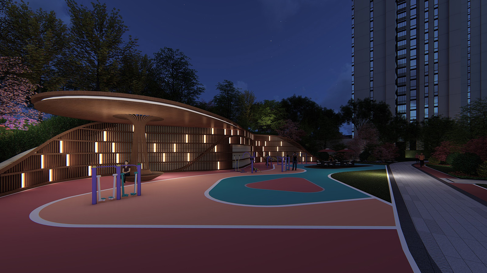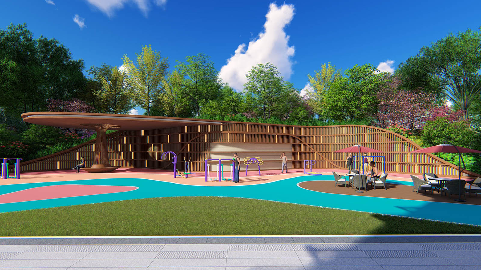 健康生活才是幸福生活,健身花園與休閑平臺相結合,為成人創造放松身心、鍛煉身體的活動場所。