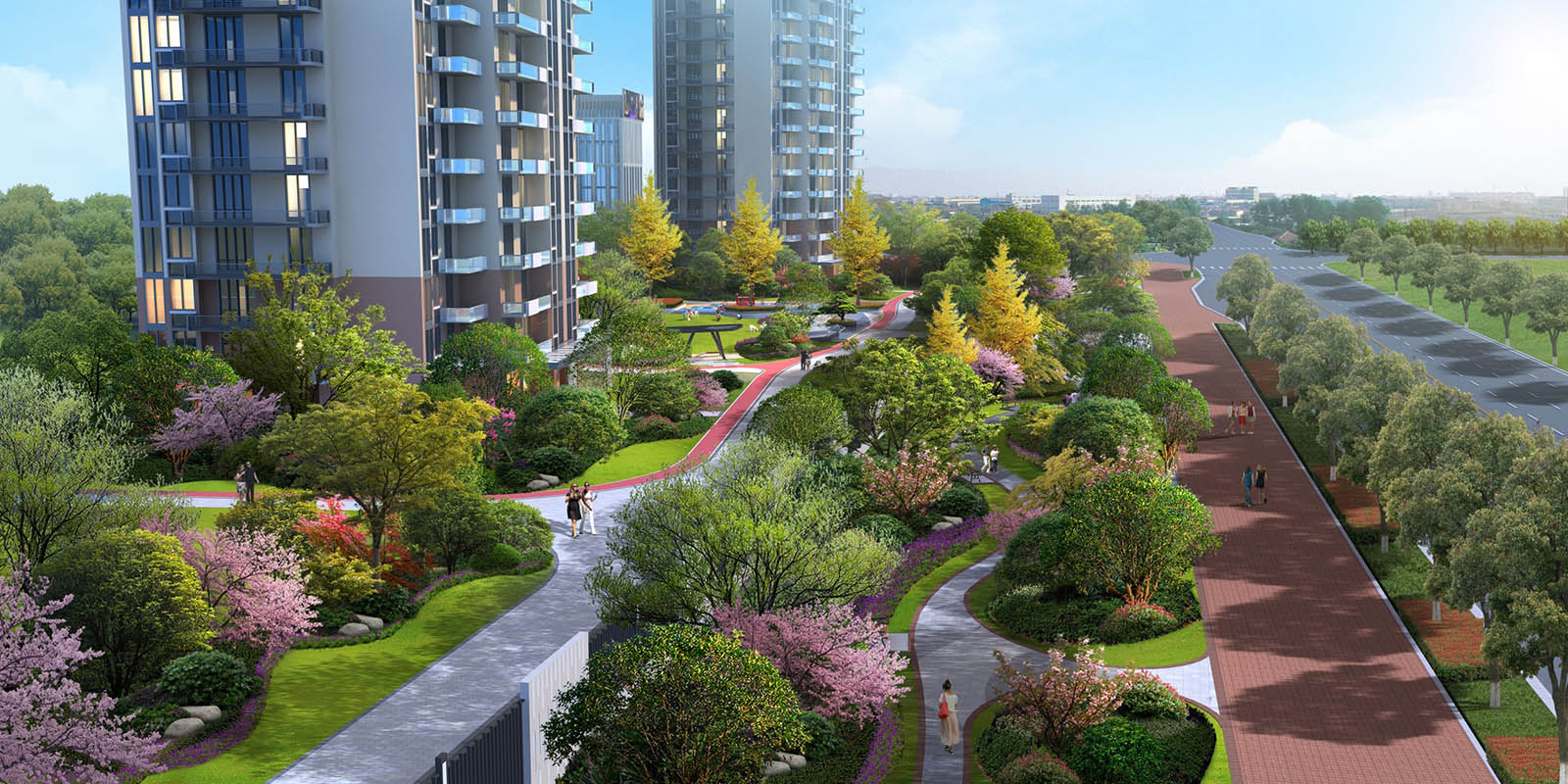帶狀公園將住區與城市道路分離,動靜分離,提升小區的品質與生態環境,為居民提供一處住區外的休閑、活動場所,使區域更加親民、宜居,以此提升住區的附加值。